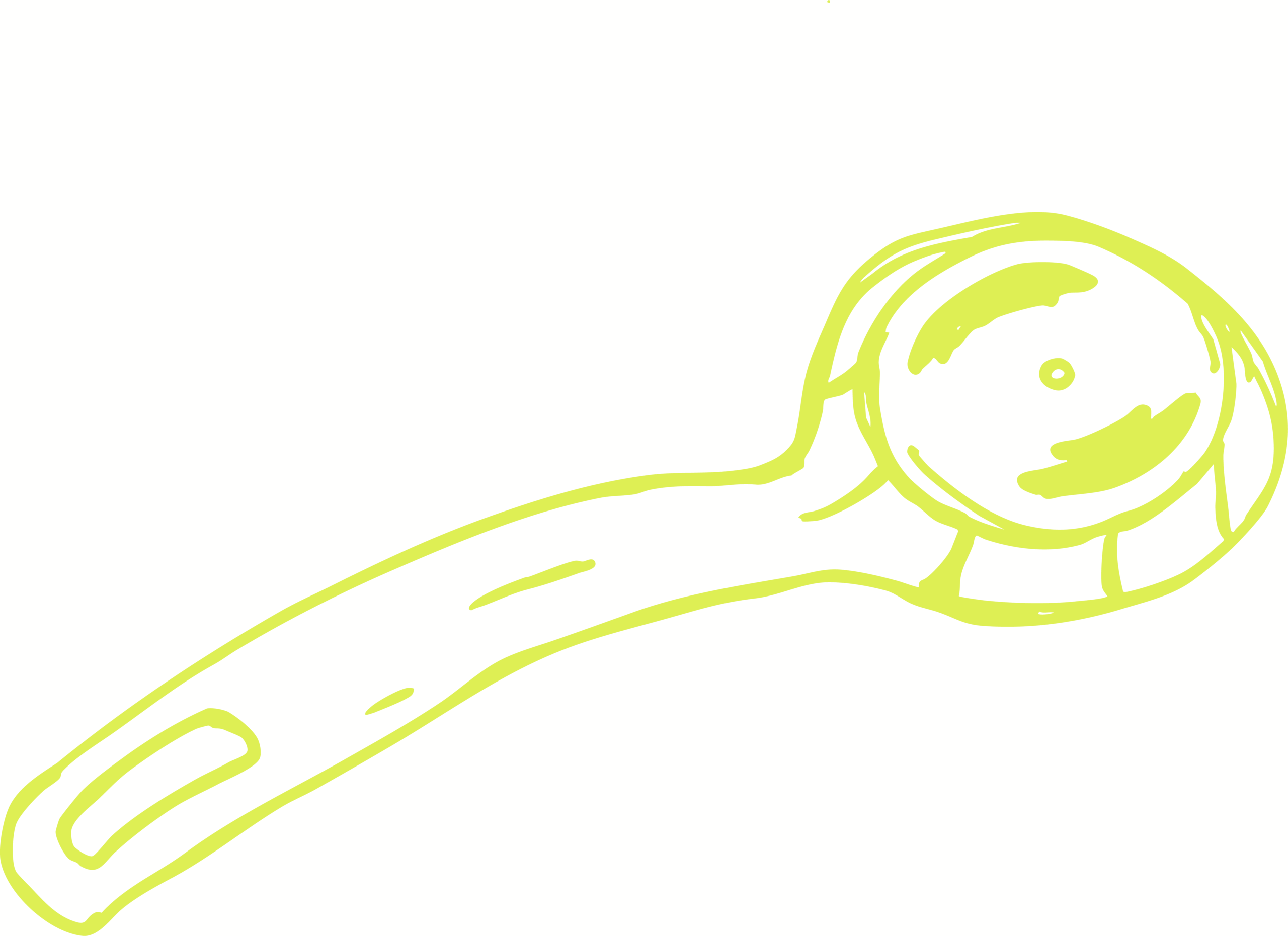 A partir de esta base tipográfica, se añadieron detalles dibujados a mano que personalizaron aún más la composición, otorgándole un estilo único. Se creo el dibujo de una espátula de cocina y en lugar de ser una normal se sustituye el final por el disco de una mesa de mezclas.