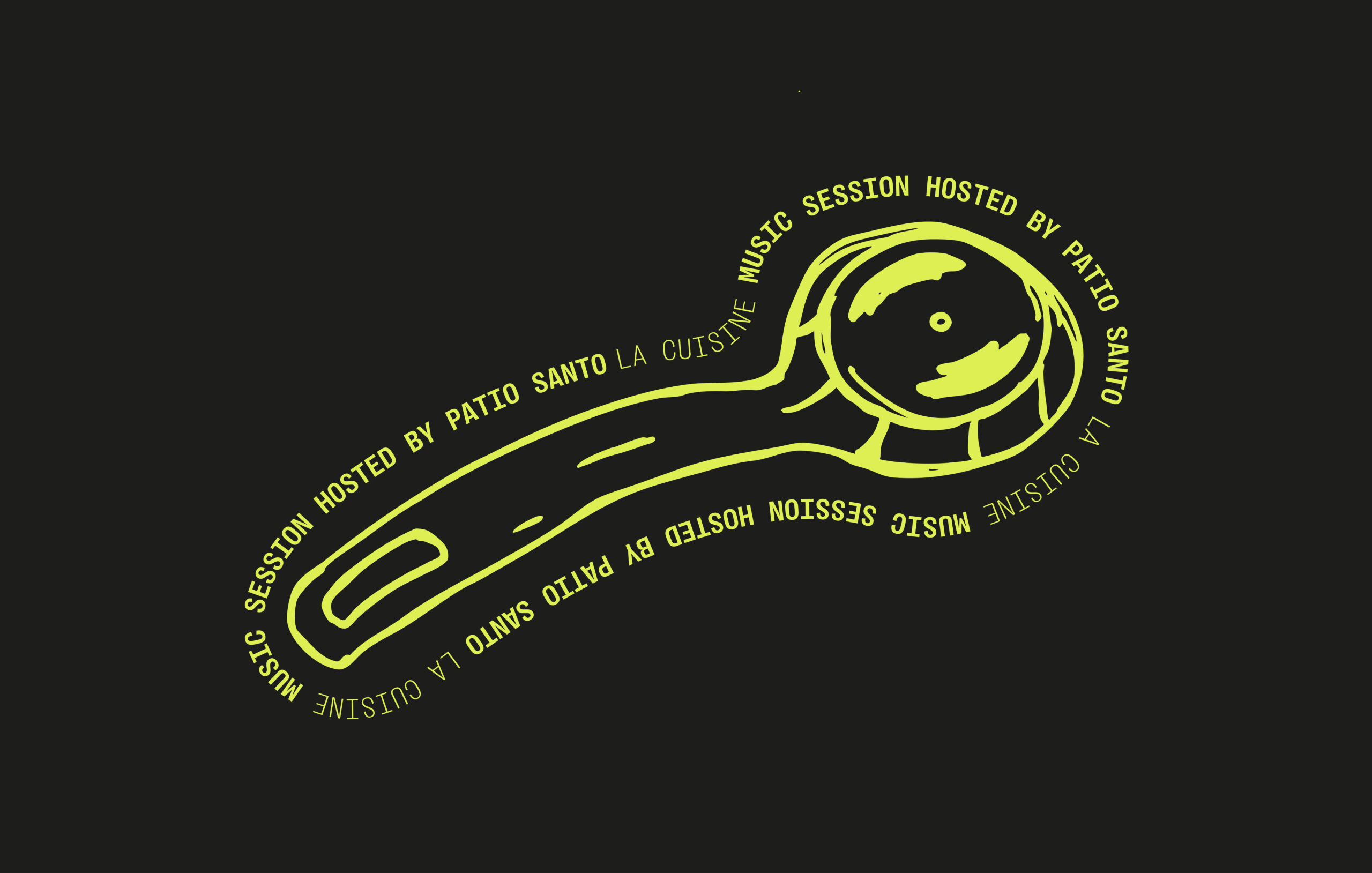 El proyecto de branding se desarrolló a partir de este concepto híbrido y desenfadado. El logotipo se diseñó como un símbolo visual directo y memorable, que combina una espátula de cocina con un disco de DJ, dando lugar a una imagen que encapsula la esencia del proyecto: mezclar sonidos como se mezclan sabores.